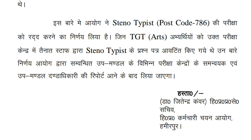 को रद्द करने का निर्णय लिया है। जिन TGT (Arts) अभ्यर्थियों को उक्त परीक्षा